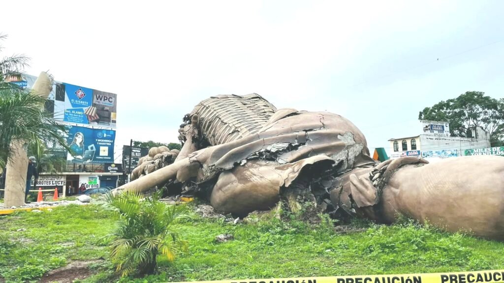 Álamo Temapache, Ver. — El icónico monumento “El Colotero”, símbolo de la identidad citrícola del norte de Veracruz, colapsó este martes, generando sorpresa y consternación entre habitantes y visitantes de la región. La estructura, de aproximadamente 15 metros de altura y creada por el artista Miguel Ángel Vargas, había sido inaugurada en 2004 como homenaje a los cortadores de naranja.