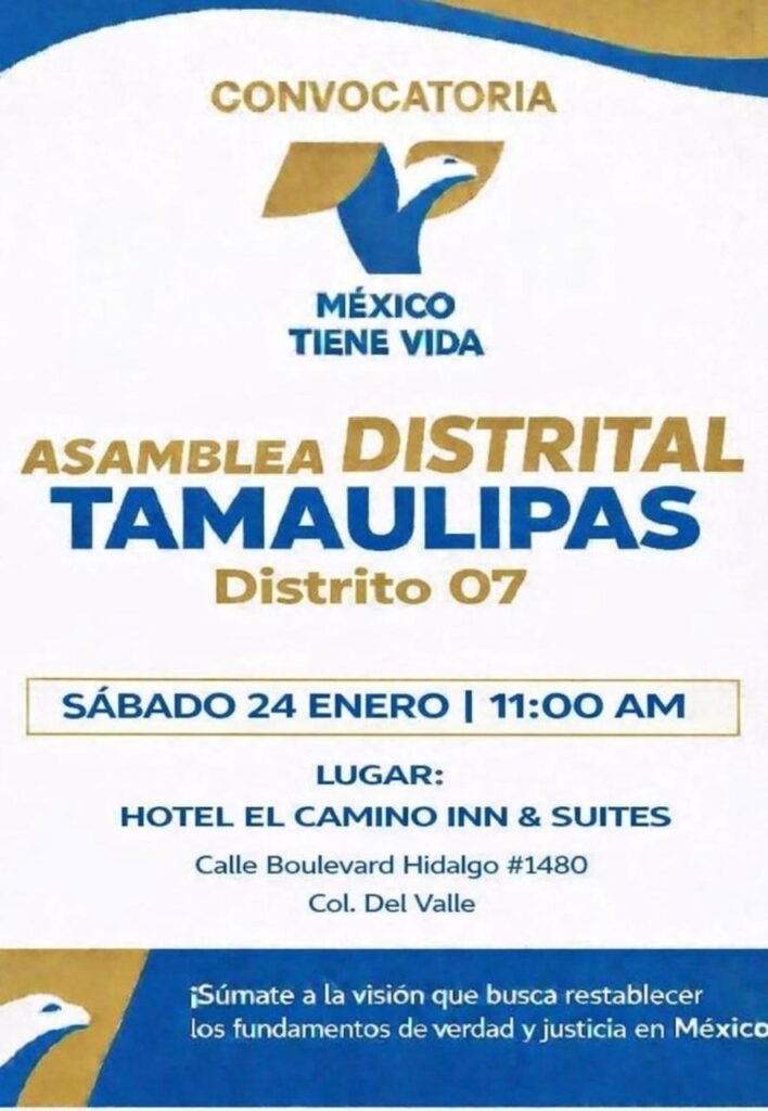 En un ambiente de entusiasmo y participación ciudadana, la asociación civil México Tiene Vida celebró este sábado por la mañana su segunda asamblea en la ciudad de Reynosa, correspondiente al distrito 07, teniendo como sede el Hotel El Camino.